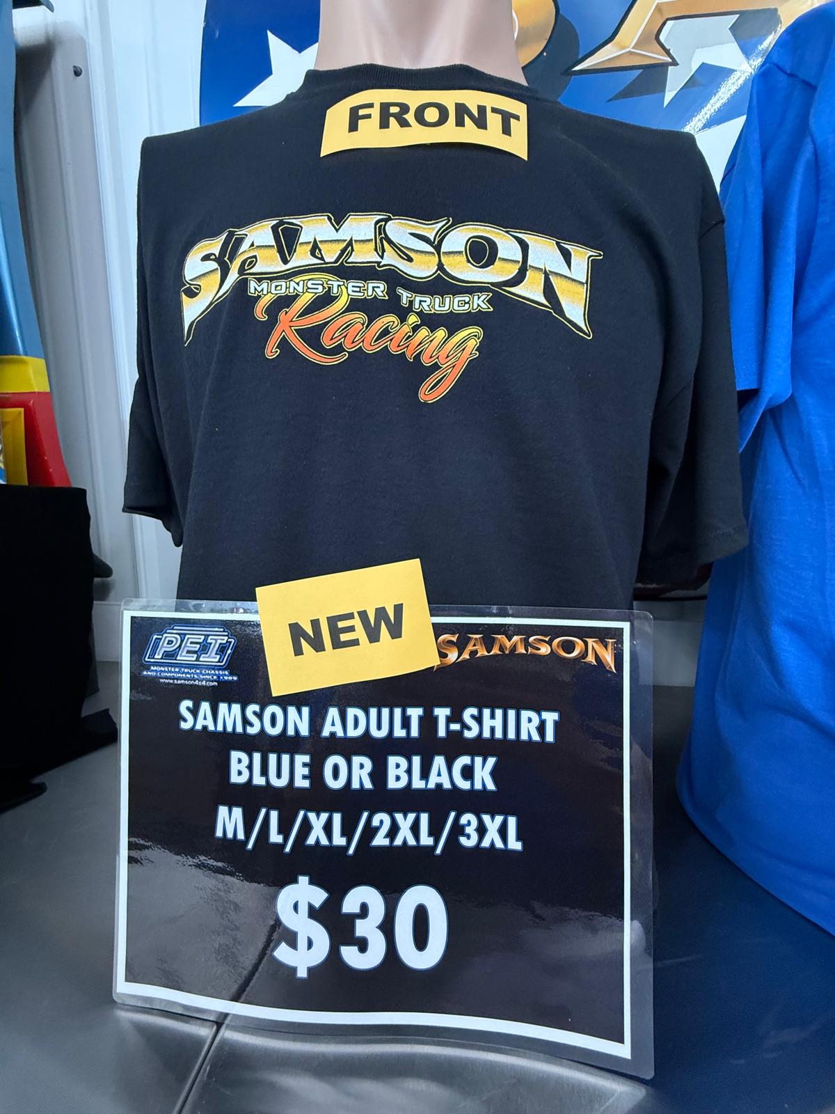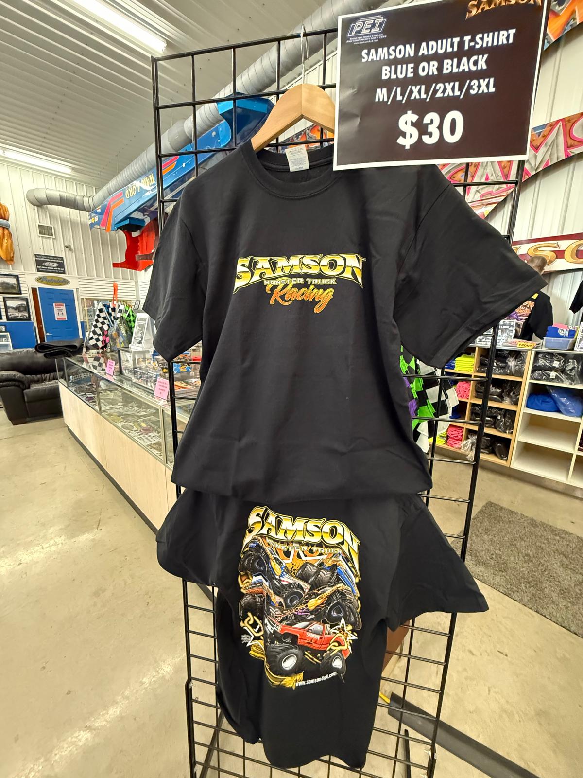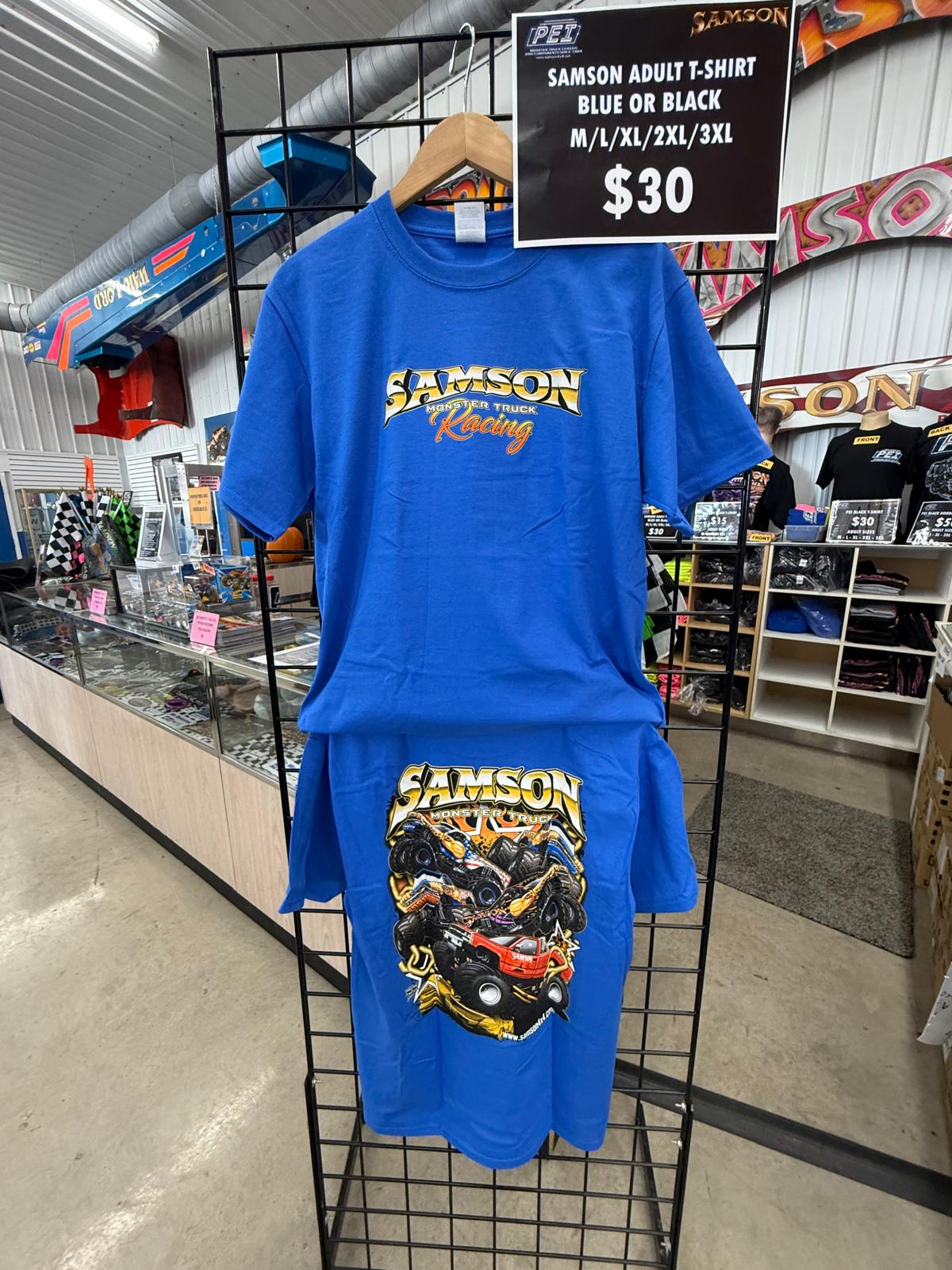 New Samson Monster truck shirts for 2025, with a look at Samson through the years! Show off your support of Samson with these awesome 100% Cotton shirts, available in black and blue!